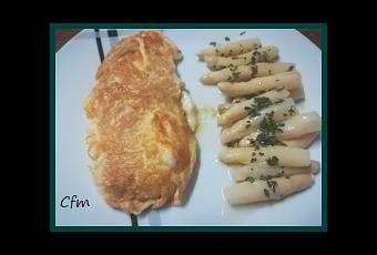 -2 huevos-Queso-Yemas de espárrago-Perejil-Aceite-Vinagre-Sal-Ajo