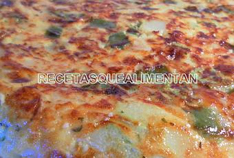 500 gr. patatas, 6 huevos, 100 gr. queso, un calabacín, un pimiento verde, una cebolla, aceite de oliva, perejil, eneldo, sal.
