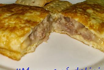 - Ponemos en el centro un poco de masa de bollitos de carne (o el relleno elegido).