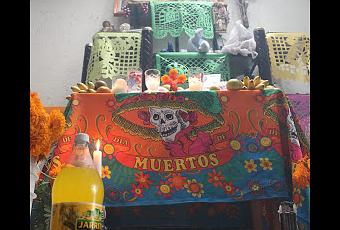 Ahí voy tras de ellas, de regreso a la casa vieja… ¡Ah chinga! Ahora la casa está llena de flores y no huele a nada; además está toda limpiecita, con adornos multicolores, tiras y tiras de papel picado. Todo se mira nuevo, hasta las escobas de popotillo y tepopote.