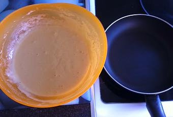 Cuando notemos que está caliente, echamos dos cucharadas soperas de la masa: