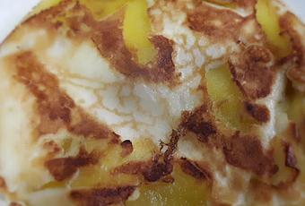 - Una vez doradas, mezclamos la mitad de la mezcla sobre ella y esperamos a que cuaje por un lado y damos la vuelta.