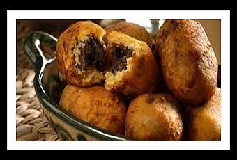 Realizar una bolita mediana, aplastar un poco, rellenar con el queso crema y la carne molida. Luego, cerrar y con las manos formar las tortitas de plátano.