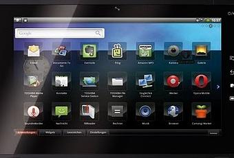Para gestionar su nuevo dispositivo, Toshiba ha optado por instalar la versión 2.2 de Android, aunque quedan dudas sobre si darán acceso a la Android Market, la tienda de aplicaciones de Android.