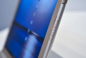 La tableta de Toshiba ahora mismo es de plástico, aunque viendo las imágenes bien puede parecer aluminio. Recordamos que es un prototipo, el modelo final podría ser de otro material. El stylus que lleva se puede enganchar en el lateral derecho de la tableta mediante una especie de clip, la intención de Toshiba es que en la versión final se pueda colocar de otra forma, el método actual es temporal.