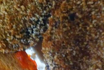 - Reboza las rodajas de berenjena, primero en la salsa de soja con la miel, y luego en el pan rallado.