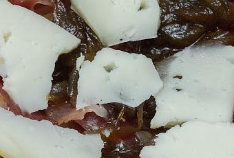 Para la tosta:Tortilla de maízla cebolla caramelizadaqueso curado de cabrajamón ibérico