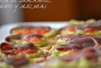 Preparación: Más sencillo no puede ser. Sobre un rebanada de pan tostado untamos guacamole. Después ponemos un poco de tomate y rematamos la tosta poniendo una o dos anchoas encima del tomate.
