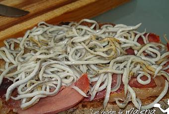 - cuatro lonchas de jamón- cuatro rodajas de pan- 400g de gulas- dos dientes de ajo- dos guindillas- una pizca de sal- dos cucharadas de aceite de olivaPreparación: