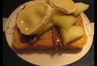 ELABORACIÓN: tostamos el pan y simplemente añadimos anchoas al gusto, trozos de melón y unas rodajas de queso de cabra. Se le puede añadir un chorrito de crema de vinagre balsámico. Nosotros nos lo comimos tal cual y estaba bien rico.