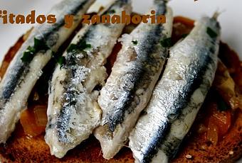 Ingredientes:4 hogazas de 9 cereales8 boquerones ( 2 x tosta)2 zanahorias1 cebolla1 diente de ajo1 hoja de laurel100 ml de vinagre100 ml de aoveescamas de salpimientaperejil (opcional)