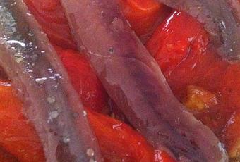 Luego cogemos una tostada ponemos nuestra escalivada por encima con un par de anchoas .