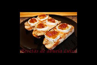 - Cortamos el pan en rebanadas de un dedo de gruesas, lo tostamos en la tostadora, reservamos. - En una sartén o en la plancha con una gotita de aceite, hacemos los escalopines con un poquito de sal al gusto. - Sobre las tostadas disponemos lo escalopines, encima unas lonchas del rulo de cabra y sobre el queso rematamos con un poco de mermelada de cebolla. - Ya solo queda meter en el horno precalentado a 180º unos 2-3 minutos hasta que veamos que el queso este fundido. - Ya solo queda servir en caliente.