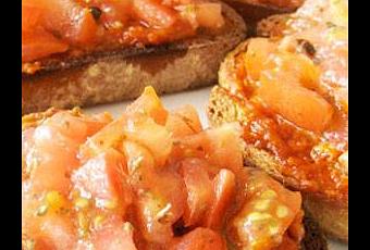 - 2 Picamos un tomate y lo aliñamos con aceite de oliva, sal, pimienta y orégano. Ponemos este tomate sobre la sobrasada y le añadimos un poco de sal maldon y unas gotas de aceite de oliva. Fuente