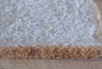 Empezamos tomando una rebanada de pan de molde. Este que empleo yo aquí es el que venden como “Rústico”. No es tan blanco como el “normal”, y a mí me tiene mejor sabor.