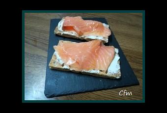 INGREDIENTES-2 tostadas con sésamo wasa-Queso de untar-Salmón ahumado en lonchas-1 limónELABORACION-Untamos una cara de las tostadas con el queso-Colocamos encima las lonchas de salmón-Exprimimos por encima el limón