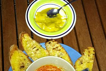 - Para las tostas: una buena hogaza de pan o barra de pan. Cortamos el pan en rebanadas y las untamos con ajoaceite. Con el horno precalentado a 180ºC, colocamos las rebanadas a media altura y a los cinco minutos cambiamos a la función de gratinar durante otros tres o cinco minutos más. Una delicia!!!
