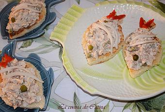 Con el calor lo que mas apetece comer son cosas frías y variadas. Estas tostas son muy sencillas y si tenéis niños a los que les gusta ayudar en la cocina, hacer las rebanadas de pan de molde en forma de peces es muy divertido.