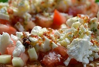- Para las tostas, cortar en daditos pequeños el tomate, aliñar con aceite y sal y repartir por las rebanadas de pan ya tostado. Después desmigar el queso feta por encima y con ayuda de un rallador, rallar el pesto que hemos preparado y tendremos congelado y cubrir la superficie de la tosta.