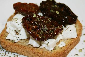 Otra de las recetas que hemos preparado con los productos que nos envió la empresa Trevijano son las tostas de queso de cabra y tomate deshidratado.