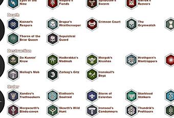 Son todas las bandas que hay a día de hoy en Warhammer Underworlds, agrupadas por Alianzas(Orden, Destrucción, Muerte y Caos). Cada banda tiene sus figuras,cartas,etc. Están contadas hasta las de la caja base de la temporada actual (Harrowdeep).