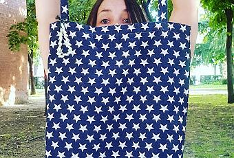 Si hace unos meses presentaba la Tote bag stars en fondo blanco hoy os traigo otra bolsa de mismas medidas con fondo azul.