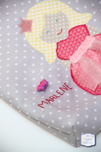 ¿Cómo va el martes? Esta semana está siendo dura para los madrileños, después de 2 puentes en apenas 15 días, enfrentarse a una semana laboral completa tiene su dificultad. Bueno, no pasa nada, me han chivado que en junio hay otro día festivo y dentro de nada estamos de vacaciones, ya veréis que rápido se pasa.Ya se que el otro día os puse los dientes largos con nuevos tutoriales peroooo, aun no los tengo listos. Además, hay que dosificar las cosas buenas, ¿no? A cambio, os voy a enseñar un mini tote bag precioso que me encargaron hace poco. La destinataria es una pequeñaja de 5 años, por eso se varió un poco el modelo tradicional de las mochilas de guardería para que le hiciera más gracia. Como me dijeron que era un niña muy guapa rubita de ojos azules, se me ocurrió hacer una princesa con esas características. Encontré un dibujo en google que me gustó mucho y lo cosí muy similar.