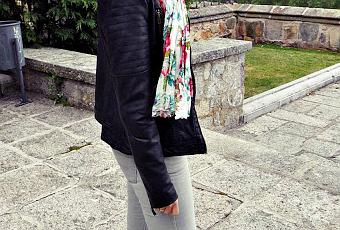 Con ésta primavera tan extraña que estamos teniendo, la adquisición de la perfecto me ha venido genial para estos días en los que parece que hemos retrocedido al otoño, aunque espero que ya pueda guardarla hasta el próximo, porque eso significará que el calor ha llegado.Sobre el outfit, poco que decir, negro y gris, el toque de color lo da el pañuelo, con print floral.Gracias por vuestras visitas y comentarios!!