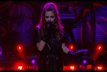 La artista escogió para la ocasión un vestido de piel que iba muy acorde con la sugerente interpretación de la canción: