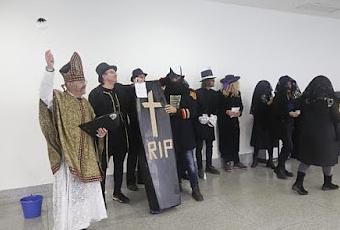 Protesta sorpresa en la terminal por los cinco empleos perdidos en la instalación pese al aumento del tráfico aéreo. El Carnaval inspiró una nueva protesta laboral de los trabajadores del Aeropuerto de Menorca. Una acción sorpresa -según Menorca. Info- en la que se simuló un funeral por “los puestos de trabajo no repuestos” en la instalación gestionada por AENA. Y Ramón Carreras, el delegado sindical de Comisiones Obreras, lideró la performance, ataviado con la casulla y la mitra de un obispo. Tampoco faltó la lectura del testamento d’AENA i ENAIRE a Menorca por estos empleos, en forma de versos, como estos: