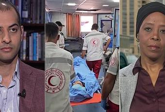 En conversación con Democracy Now!, Musleh contó detalles sobre su experiencia allí: "Recibimos una gran cantidad de personas heridas en el servicio de emergencias y, en la mayoría de los casos, lamentablemente, eran mujeres y niños. [...] Muchos niños y niñas venían sin piernas, sin brazos. [...] Incluso vi a un padre que traía a sus hijos en dos bolsas".