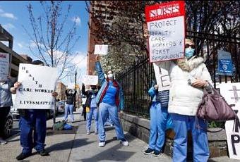 Miles de enfermeros y otros trabajadores de la salud de Estados Unidos llaman hoy al gobierno federal investigar lo que consideran una mala respuesta de sus empleadores a la pandemia del nuevo coronavirus.