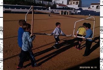 El pasado martes en un entrenamiento de mi escuela mis pequeños de 5 años dispuesto a colaborar y ser parte fundamental del la escuela. Se decidieron a colocar ellos la portería, ya que me había visto a mí colocar la otra mini portería. Pues bien aquí os dejo una foto graciosa `por todo lo que representa, por su corta edad, y porque el trabajo entre todos es muchos más fructífero. Además de ayuda también recogemos los materiales entre todos, el primero yo y después ellos me siguen y todo juntos formamos un pilar fundamental en la Escuela Municipal de fútbol 7 de Almogia.