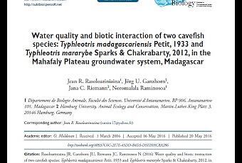 La prestigiosa revista SUBTERRANEAN BIOLOGY ha publicado recientemente un trabajo muy interesante, titulado "Water quality and biotic interaction of two cavefish species: Typhleotris madagascariensis Petit, 1933 and Typhleotris mararybe Sparks & Chakrabarty, 2012, in the Mahafaly Plateau groundwater system, Madagascar", firmado por Jean Robertin Rasoloariniaina, Joerg U. Ganzhorn, Jana C. Riemann y Noromalala Raminosoa. Este trabajo es de libre acceso y podremos leerlo completamente en: http://subtbiol.pensoft.net/articles.php?id=8321 Enhorabuena a los autores!!!!