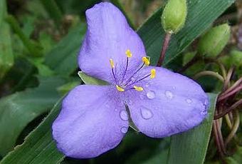 Planta herbácea, erguida o rastrera, con raíces fibrosas, glabra o levemente pubescente. Hojas lineal a lanceoladas, glabras, vellosas, que envuelven el tallo. Las flores, de color azul-violáceas, purpúreas o blancas, están dispuestas en cimas protegidas por brácteas. El fruto es una cápsula. Se multiplica por gajos o división de matas en el otoño y a principios de la primavera.