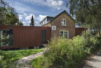 Zecc Architecten. En él se combina la tradición de la antigua casa del tren con materiales modernos y actuales en un entorno increible en un parque Nacional. Acero, hormigón, vidrio,ladrillo, madera…son los materiales de la nueva casa mientras que la antigua casa no ha sufrido cambios en su interior. Todo ello dejando que la vista sea la principal protagonista.
