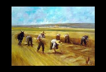 Algunos labradores de pocos posibles. en esos días. ya han cosechado un poco de cebada para dar de comer a las caballerías: es la parva del hambre.