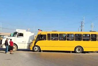 Los hechos se reportaron sobre la avenida Industrias cuando un tráiler dio una vuelta prohibida a la altura del eje 100, chocando contra un camión de transporte urbano.