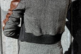 De lunes! El look de hoy auna varias tendencias :el traje de chaqueta de dos piezas (un clasico renovado, con falda o con pantalón) y el tejido inglés, en este caso de espiga. Me parece un conjunto muy original. Os deseo feliz lunes!