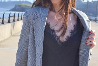 Uno de los imprescindibles esta temporada otoño/invierno es el traje de cuadros Príncipe de Gales. Como ya os comenté en varios post los cuadros british son tendencia pero sin duda la palma se la lleva el traje, bien traje de chaqueta y falda o bien traje de chaqueta y pantalón que es precisamente lo que os enseño en el look de hoy. Comencé comprando la blazer y acabé haciéndome también con el pantalón porque me parece una opción perfecta, super versátil y porque además nunca está de mas tener un traje de cuadros british en el armario. En este primer look que os enseño con el traje Príncipe de Gales lo combino de una forma elegante y un punto sensual con un top lencero negro, un look que puede servirnos para ir a trabajar y después acudir a un "after work" o a una cena. Stilettos de PARES PERFECTOS y un bolso vintage muy especial, ya que perteneció a mi abuela, acompañan el look. Y como complemento estrella una gorra de fieltrogris hecha a mano por la diseñadora de tocados y sombreros asturianaNOHEMÍ MAESTRE, os recomiendo que echéis un vistazo a su web porque hace cosas preciosas.