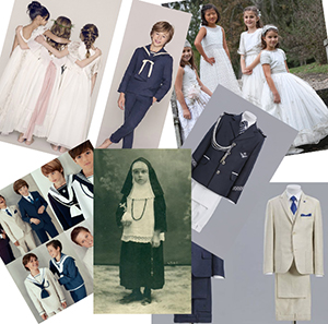 Los trajes de comunión siguen apostando por los modelos clásicos pero actualizados, además de haberse incorporado nuevos atuendos. También han desaparecido algunas indumentarias, excesivamente religiosas y austeras para el gusto actual, nos referimos a disfraces de monjas para las niñas y monjes para los niños. Incluso el ostentoso crucifijo o el engorroso rosario, tiende a desaparecer... igualmente el misal. Menos es más, también en lo religioso.