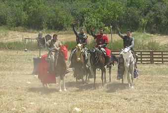 Íbamos buscando un bonito lugar en el que había un río, con un molino...... cuando al atravesar Tramacastilla, nos encontramos con que estaba en fiestas, ambientadas éstas en la Edad Media, y en una explanada cercana, se estaba celebrando una auténtica justa medieval, es decir un combate a caballo, con todos los elementos propios de ella. Mirad qué bonito