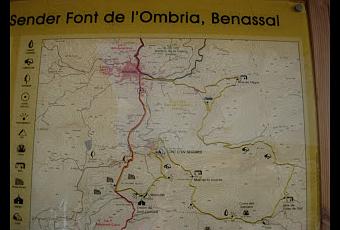 El autobús nos dejó en Benasal, y sin demasiada dificultad, yendo en dirección Balneario de Benasal, encontramos el cartel señalizador de la ruta.