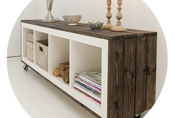 2. Tableros o listones de madera, por ejemplo (aquí). Necesitaréis comprar un barniz y/o pintura para darle el acabado que más os guste. También está la opción de rescatar alguna madera vieja, esto es algo más complicado de conseguir, pero con ellas conseguiréis un mueble con más encanto. Para fijar la madera al mueble podéis hacerlo mediante cola o clavos.