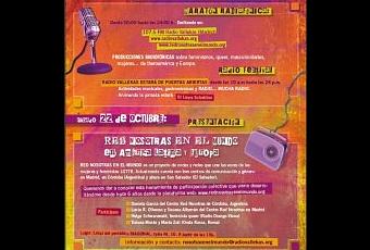 Allí decidimos que este día podría constituir una fecha de visibilidad de la radio feminista. Y un año después en Madrid queremos seguir con este espíritu organizando en este día un radio festival en la sede de Radio Vallekas donde el proyecto de género y comunicación lleva 11 años trabajando y ahora con la gestión directa de las mujeres desde la Asociación Nosotras en el Mundo. Entonces, para celebrar el 21 de octubre realizaremos: