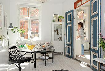 No sé si es su intenso color azul, o la huella que ha dejado en ella el paso del tiempo, pero me encanta esta puerta. Bueno, ella y lo que esconde tras de sí. Visitamos nuevamente un maravilloso y encantador apartamento de Alvhem.