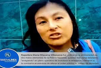 En estos tiempos ya no solamente hay que cuidarse de los delincuentes que merodean las calles y avenidas, sino también de los delincuentes uniformados, de los malos policías que deberían honrar a su institución y velar por la integridad de sus conciudadanos. Hace apenas unos días la reportera del programa de noticias «Visión Informativa» de Radio Stereo 92 de Huacho, Diana Verenise Hilacama Villanueva, fue víctima del abuso policial tras detectar una irregularidad en el modo de proceder de los llamados efectivos del orden, lo que le costó ser arrestada arbitrariamente cuando tan solamente cubría un evento propia de su labor periodística.La reportera se encontraba cubriendo un operativo policial realizado a las unidades vehiculares menores [mototaxis] de esta localidad. Mientras realizaba su habitual trabajo detectó un comportamiento sospechoso en los uniformados, por lo que no dudó en reportarlo al aire, lo que le costó ser intervenida por los malos elementos, quienes la inculparon de alterar el orden público en un supuesto estado de ebriedad, trasladándola opresivamente hasta la comisaría de la zona donde los indeseables agentes no supieron cómo justificar la situación real de la mujer de prensa. Es decir al verse descubiertos por la periodista la acusaron de estar completamente borracha y así encubrir su mal proceder en la mencionada inspección vehicular. Ante este desgraciado suceso, Hilacama Villanuevaha decidido denunciar a estos policías por abuso de autoridad y por atentar contra la libertad de expresión y de prensa. IMPORTANTE: Si un ciudadano se siente maltratado por un policía debe filmar el hecho con una cámara de vídeo y recurrir a la comisaría cercana, informando el nombre del oficial (todo policía tiene su identificación en la parte derecha del pecho), informó el general Máximo Ramírez, director de defensa legal de la PNP.