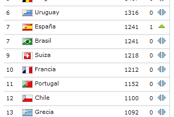 Por su parte la Selección Chilena esta en el lugar 12 del ranking y es el 5o en su confederación por debajo de Argentina, Colombia, Uruguay y Brasil.