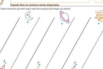 Ficha de grafomotricidad 3 años: Trazado libre en caminos rectos diagonales
