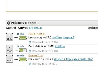 - Integra una agenda. Si asignas una fecha y/u hora a una acción, queda catalogada dentro de la agenda. Crea el hábito de controlarla y no crear acciones-recordatorio que pueden disgregar la función de la lista de siguientes acciones.